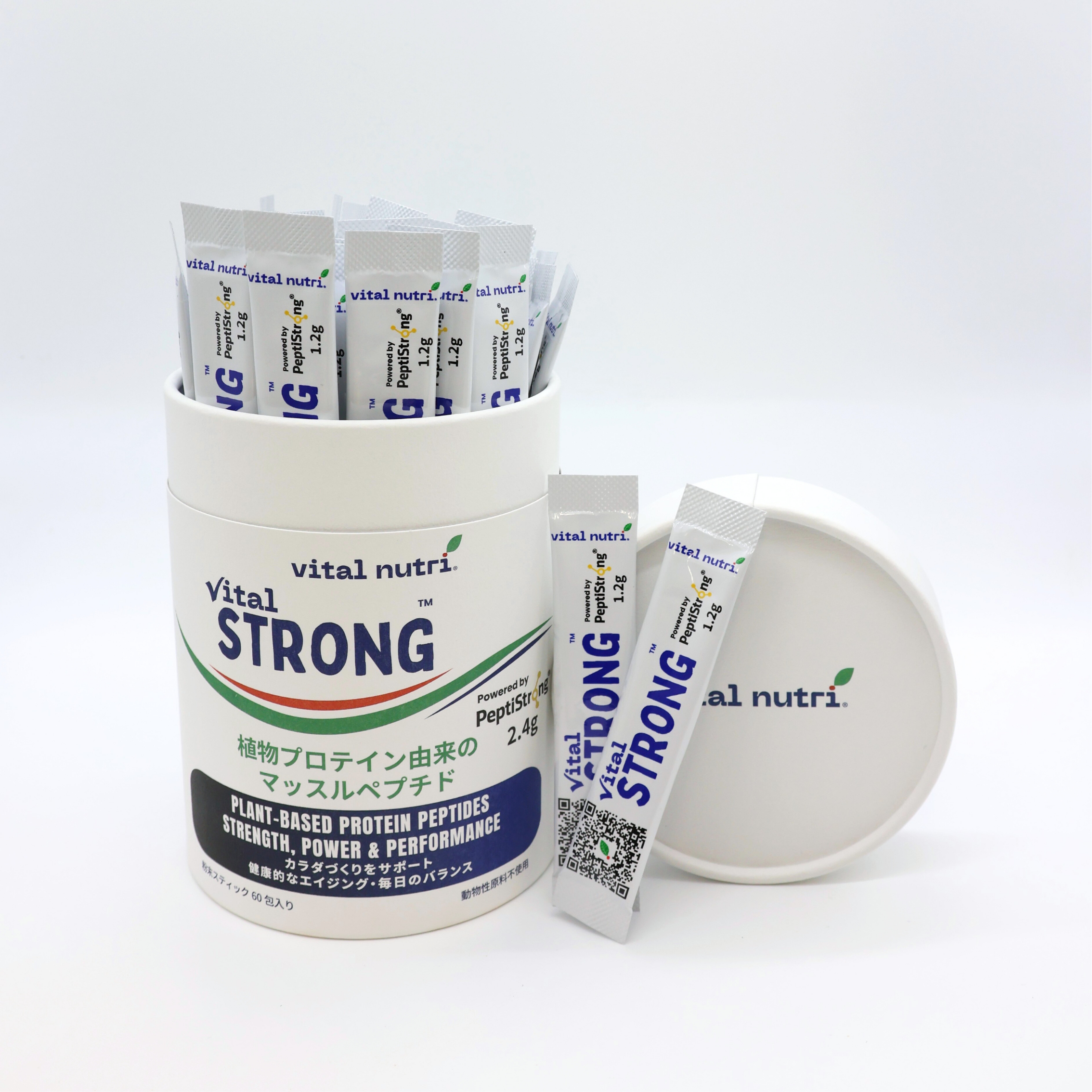 Vital STRONG™ は、蚕豆(Vicia faba)由来の植物性ペプチド複合体 PeptiStrong® を配合した、次世代型のマッスルヘルスサプリメントです。