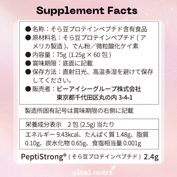 主な成分: PeptiStrong® (そら豆由来の生物活性プロテインペプチド)